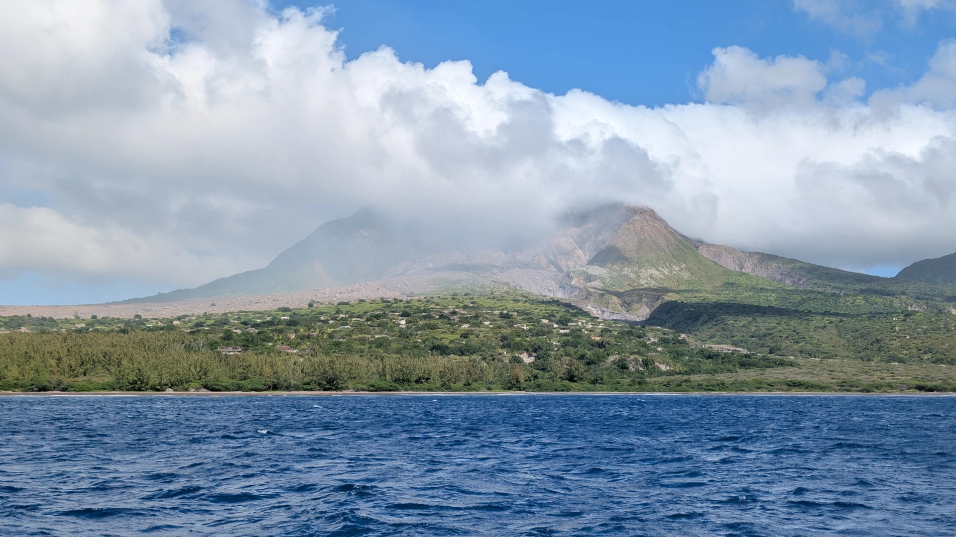 View of Plymouth from the Caribbean Sea (16.705459 , -62.237137)