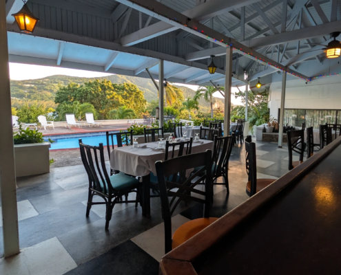 Soufriere Hills viewed from the Vue Pointe Hotel and Restaurant (16.745757 -62.232350)
