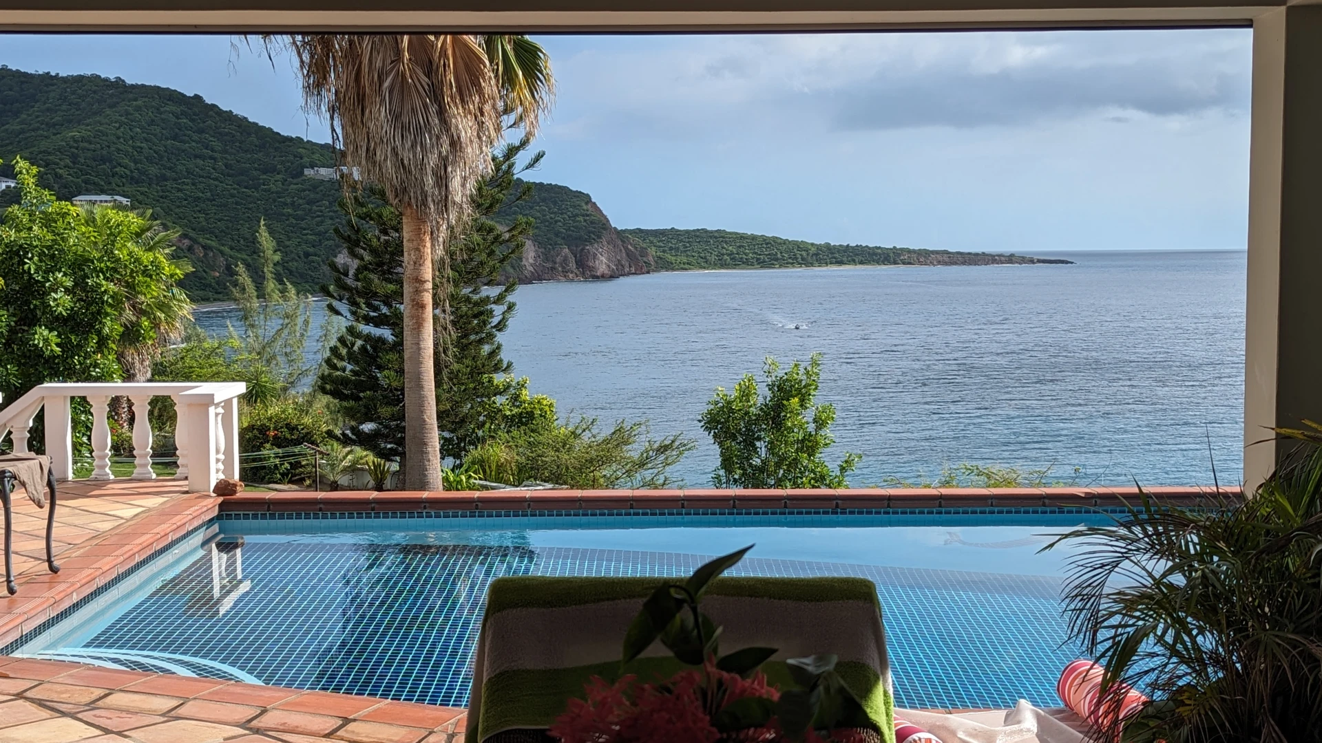 What can you say about the home other than gorgeous! We have traveled to many Caribbean locations and the views from your private patio at Avalon beat them all. If you are like us, you will spend 99% of your time between the pool and the covered patio, only retreating inside to sleep. The patio has a 180 degree view of the ocean and views South to Isle Bay Beach and Fox’s Bay Beach. Step out the front door and you have a perfectly framed view of the Soufrière Hills volcano While we cannot speak for two of the bedrooms as it was just two of us, we can say that our bed was extremely clean and comfortable and the room had everything you needed, including an awesome breeze at night. The kitchen was well equipped with everything you need for your stay. The appliances have all been upgraded recently and it was all in perfect working order. We used the washer and dryer, which is adjacent to the garage, a few times during our stay and they worked great as well. The property is well maintained and even though it is located on the ocean, there were no signs of rust that is typically found on oceanfront homes. The pool was cleaned and treated several times during our stay and the home is thoroughly cleaned at least once a week.