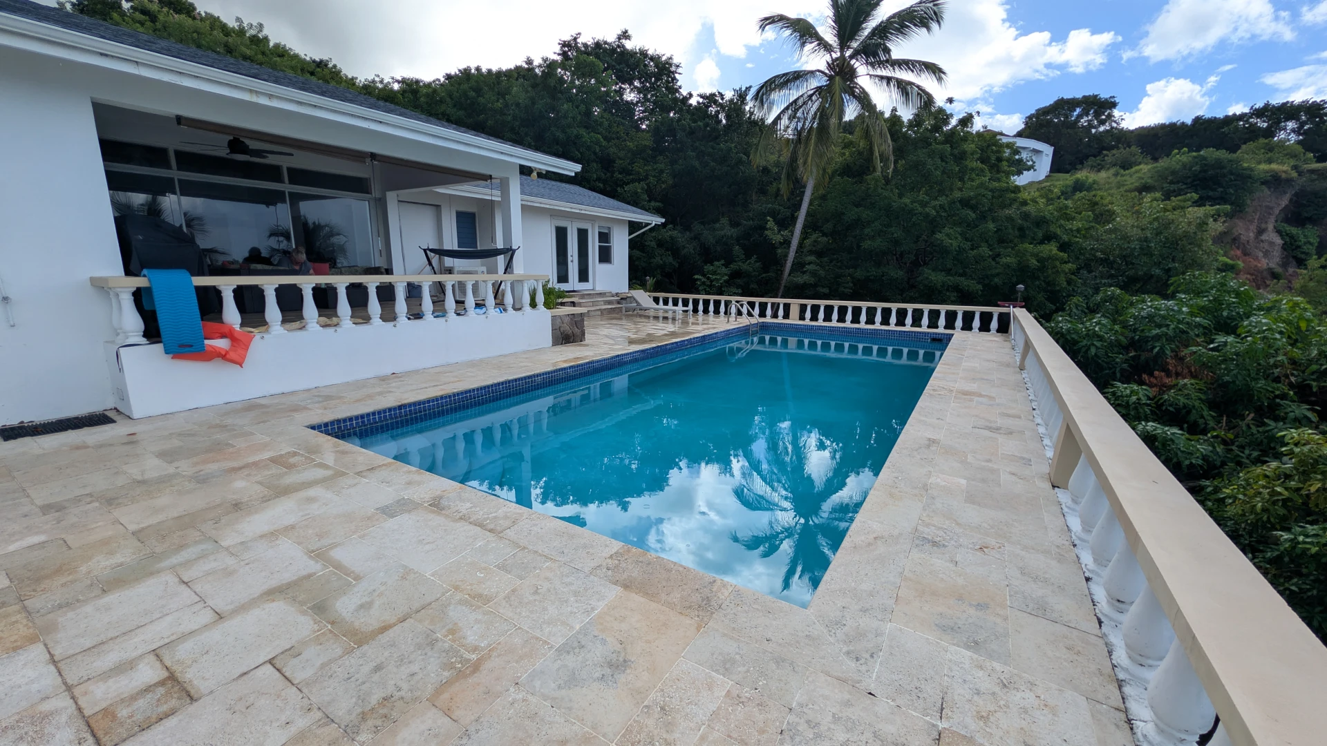 As perfect as the home is, the patio and pool area are where it is all at!  From the pool, you get 180 degrees of private Caribbean sea views looking North towards Woodland Beach and South to Lime Kiln Beach and Old Towne bluff.  An occasional passing sailboat or yacht only adds to the vibe.  The large pool offered much-needed relief from the hours spent staring into the sea.